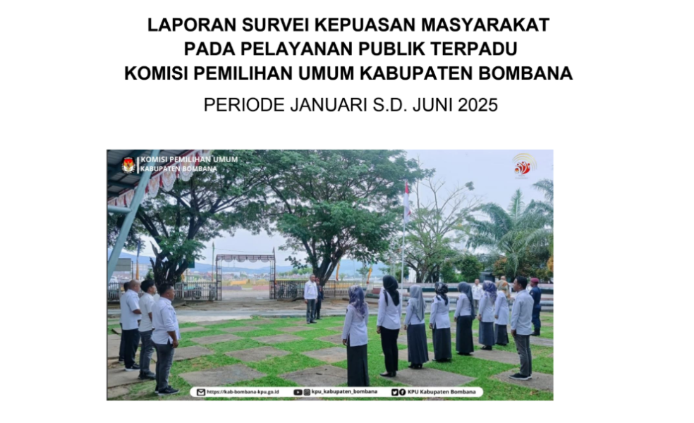 Berikut disampaikan Laporan Survei Kepuasan Masyarakat pada Pelayanan Publik Terpadu KPU Kabupaten Bombana.