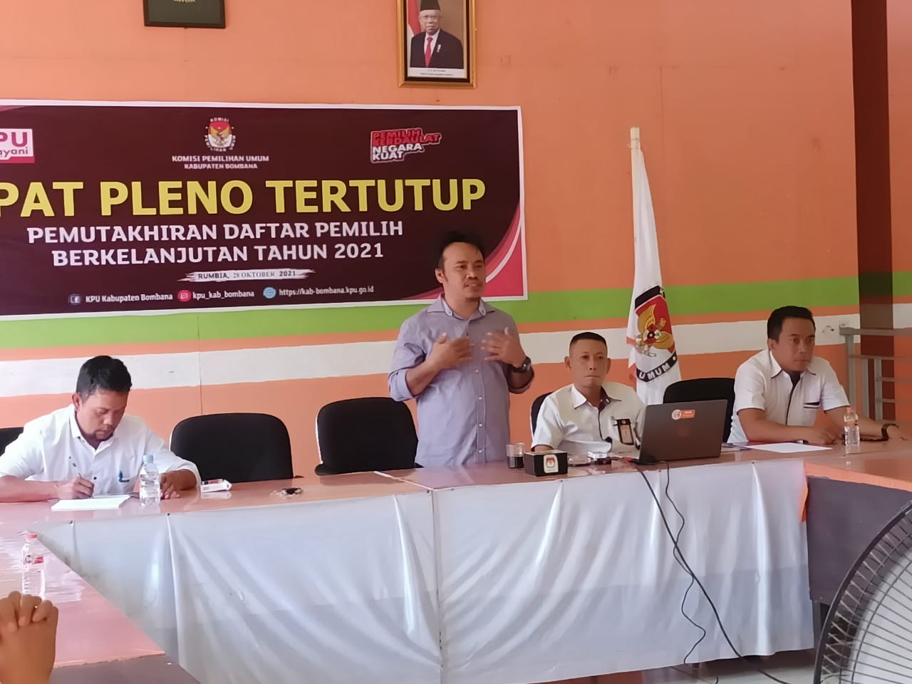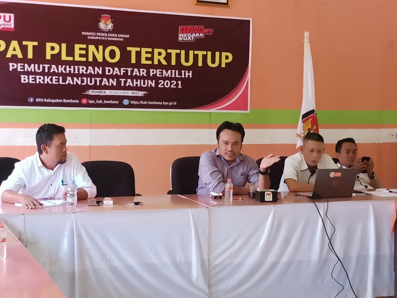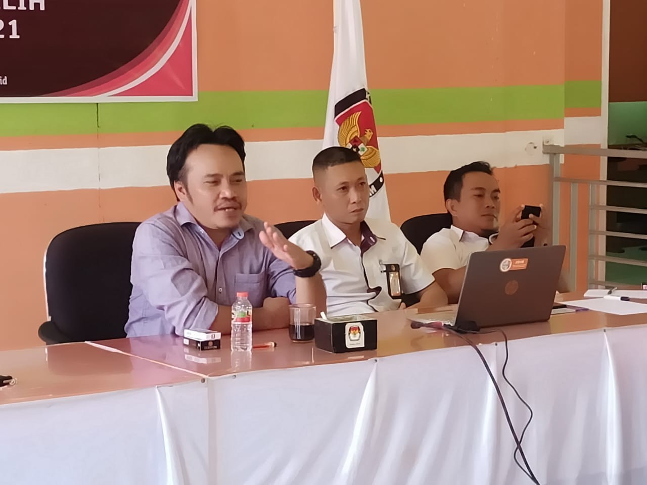 Narasumber atau pematerinya adalah mantan jurnalis yang sudah belasan tahun berkarier di Kendari Pos, grup Jawa Pos. Beliau adalah Abdi Mahatma, Anggota KPU Kabupaten Bombana yang membidangi divisi sosialisasi, pendidikan pemilih, dan parmas.
