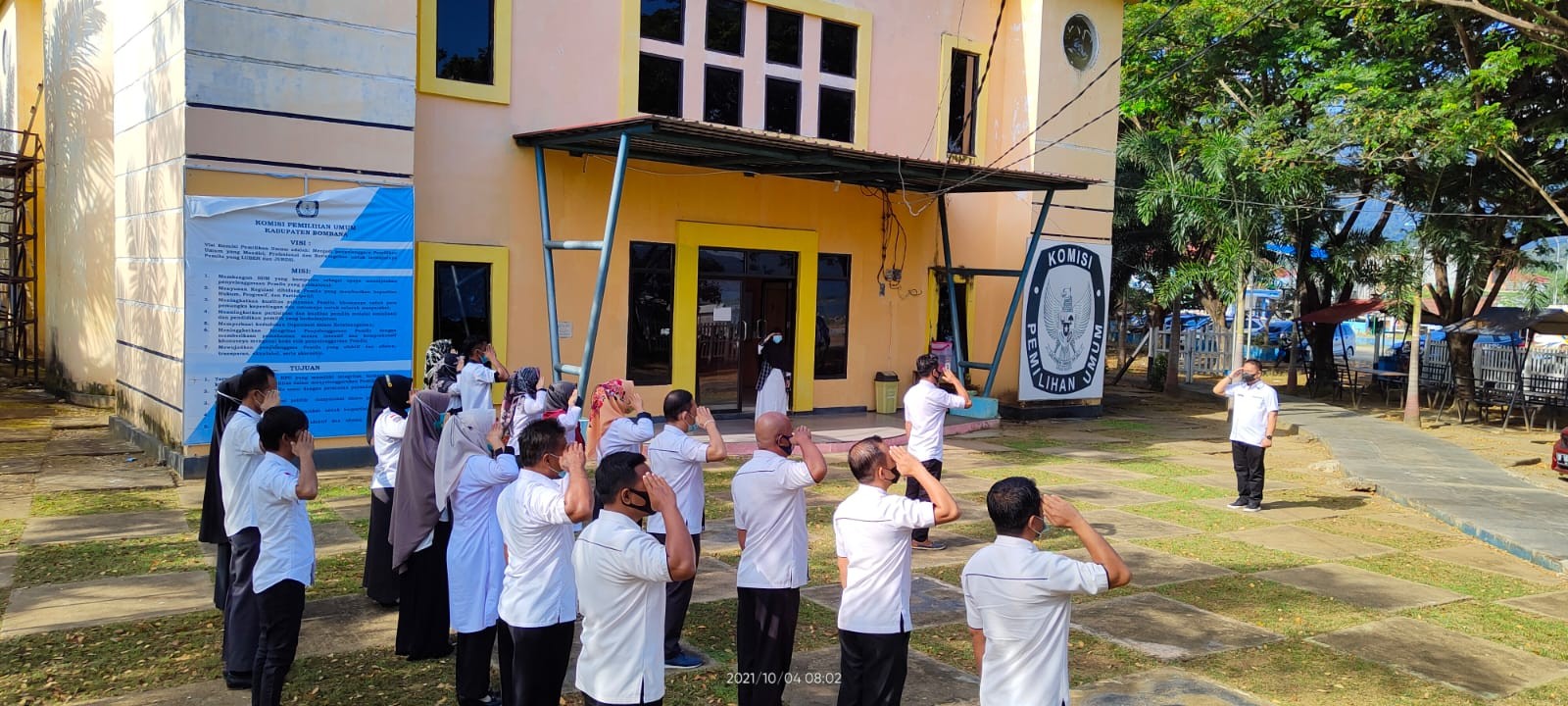 Tidak seperti pekan sebelumnya, pada hari ini, Senin (04/10), diadakan apel pagi dilanjutkan dengan rapat sekretariat yang dihadiri pula oleh komisioner KPU Kabupaten Bombana.
