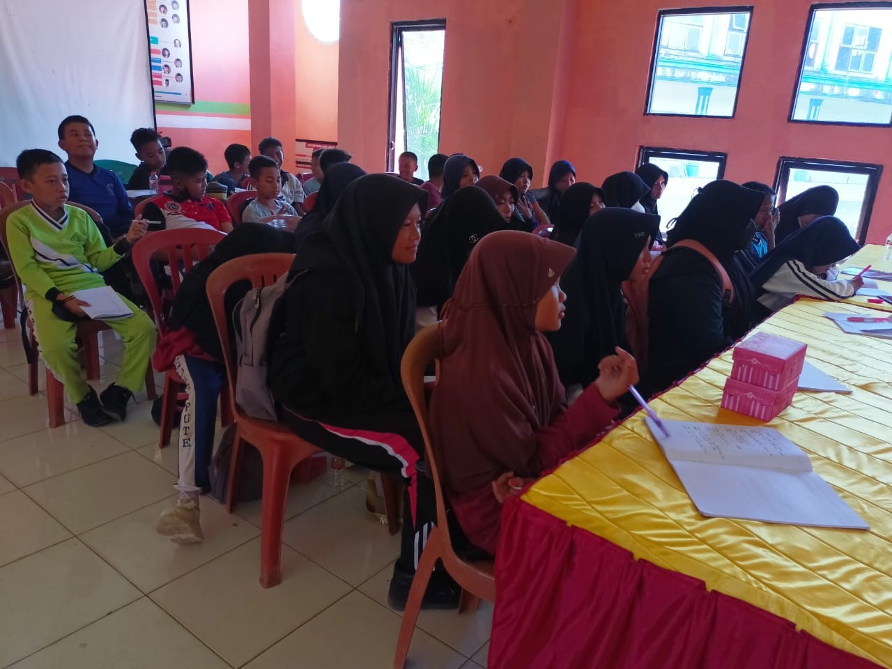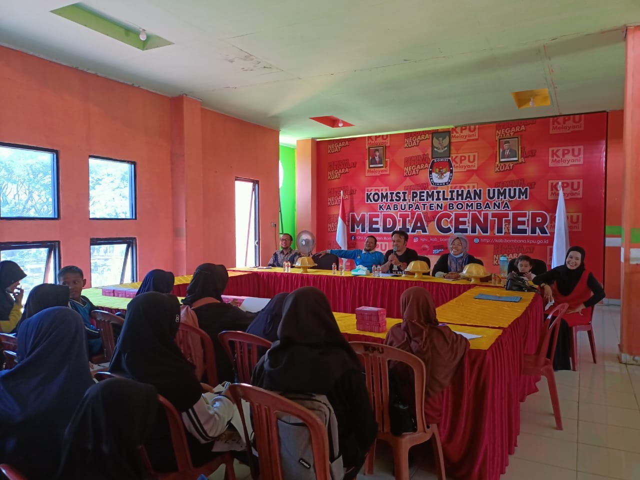 "Maksud kedatangan kami ini, Pak, adalah bagaimana anak-anak memahami proses demokrasi, termasuk tentang Pemilu itu sendiri. Diharapkan nanti mereka jadi pemilih pemula yang baik." Kata Rian kepada dua orang komisioner KPU Kabupaten Bombana yang hadir.