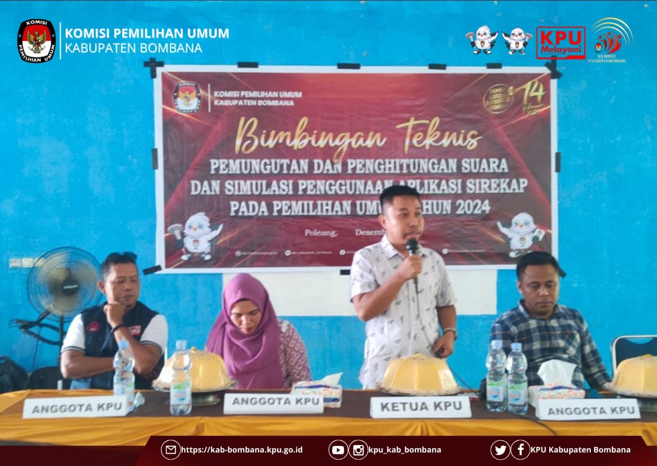 Sesuai surat undangan kepada Ketua Panitia Pemilihan Kecamatan (PPK) khusus Dapil 2 Bombana dengan nomor 487/PL.01.1-SD/7406/2/2023 tanggal 19 Desember 2023, telah diadakan kegiatan Bimbingan Teknis (Bimtek) Pemungutan, Penghitungan, dan Rekapitulasi Penghitungan Suara serta Penggunaan Aplikasi Sirekap dalam Pemilu 2024,