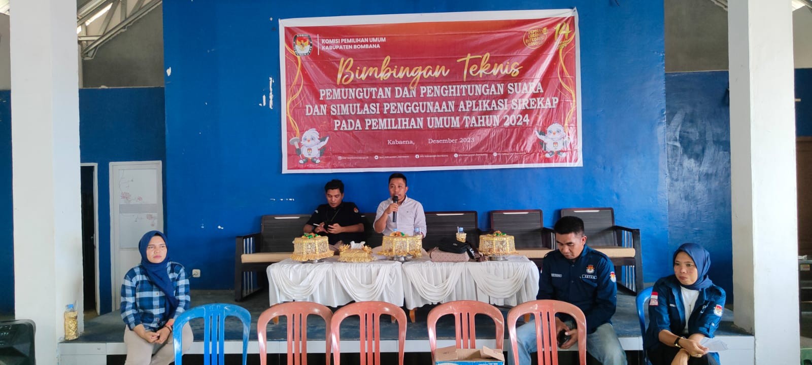 Setelah hari Natal 25 Desember 2024, KPU Kabupaten Bombana menyelenggarakan Bimbingan Teknis (Bimtek) dan Simulasi Pemungutan, Penghitungan, dan Rekapitulasi Hasil Penghitungan Suara serta Penggunaan Aplikasi Sirekap dalam Pemilu tahun 2024. Bertempat di Dapil 5 Kabupaten Bombana, yaitu: di Pulau Kabaena, tepatnya di Gedung Serbaguna Kecamatan Kabaena Barat.