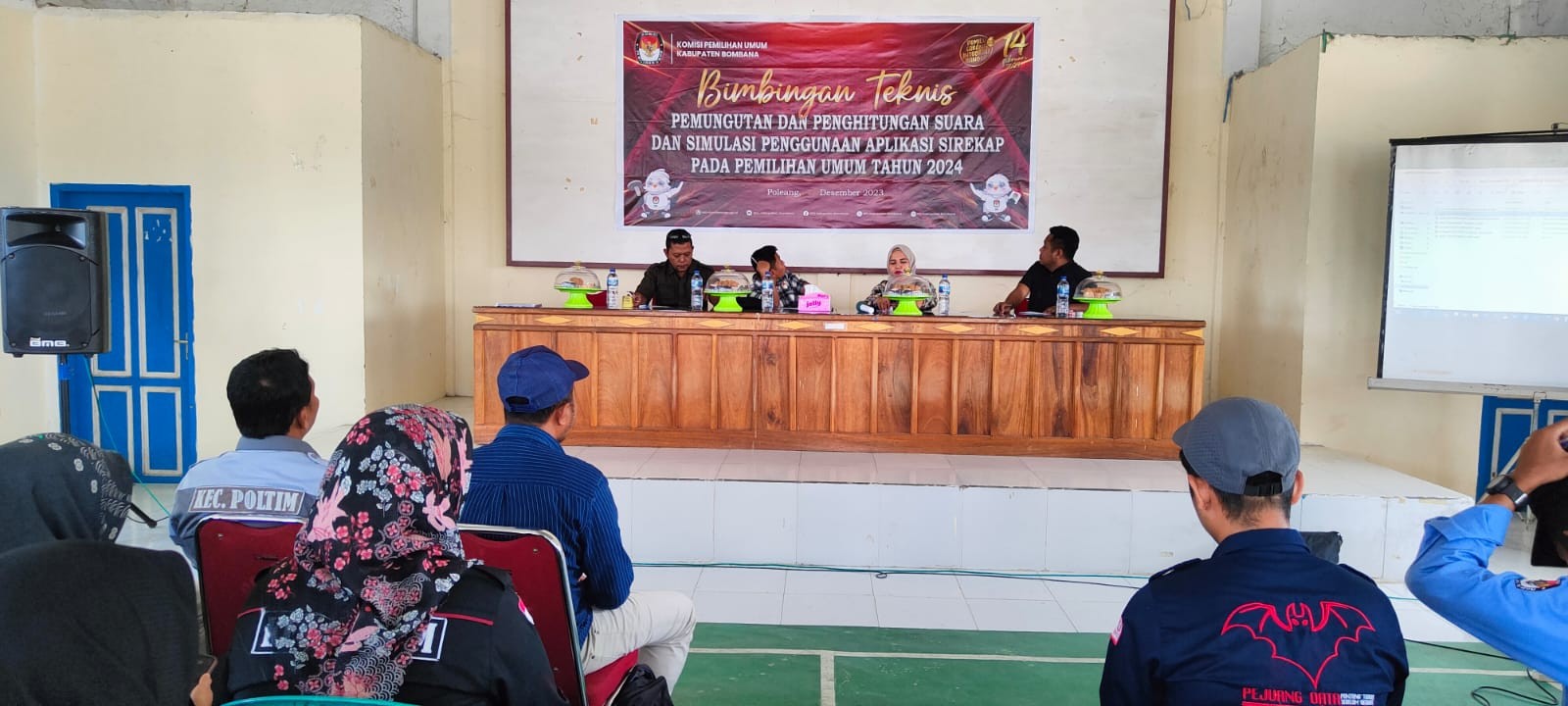 Sesuai surat undangan kepada Ketua Panitia Pemilihan Kecamatan (PPK) khusus Dapil 2 Bombana dengan nomor 488/PL.01.1-SD/7406/2/2023 tanggal 19 Desember 2023, telah diadakan kegiatan Bimbingan Teknis (Bimtek) Pemungutan, Penghitungan, dan Rekapitulasi Penghitungan Suara serta Penggunaan Aplikasi Sirekap dalam Pemilu 2024,