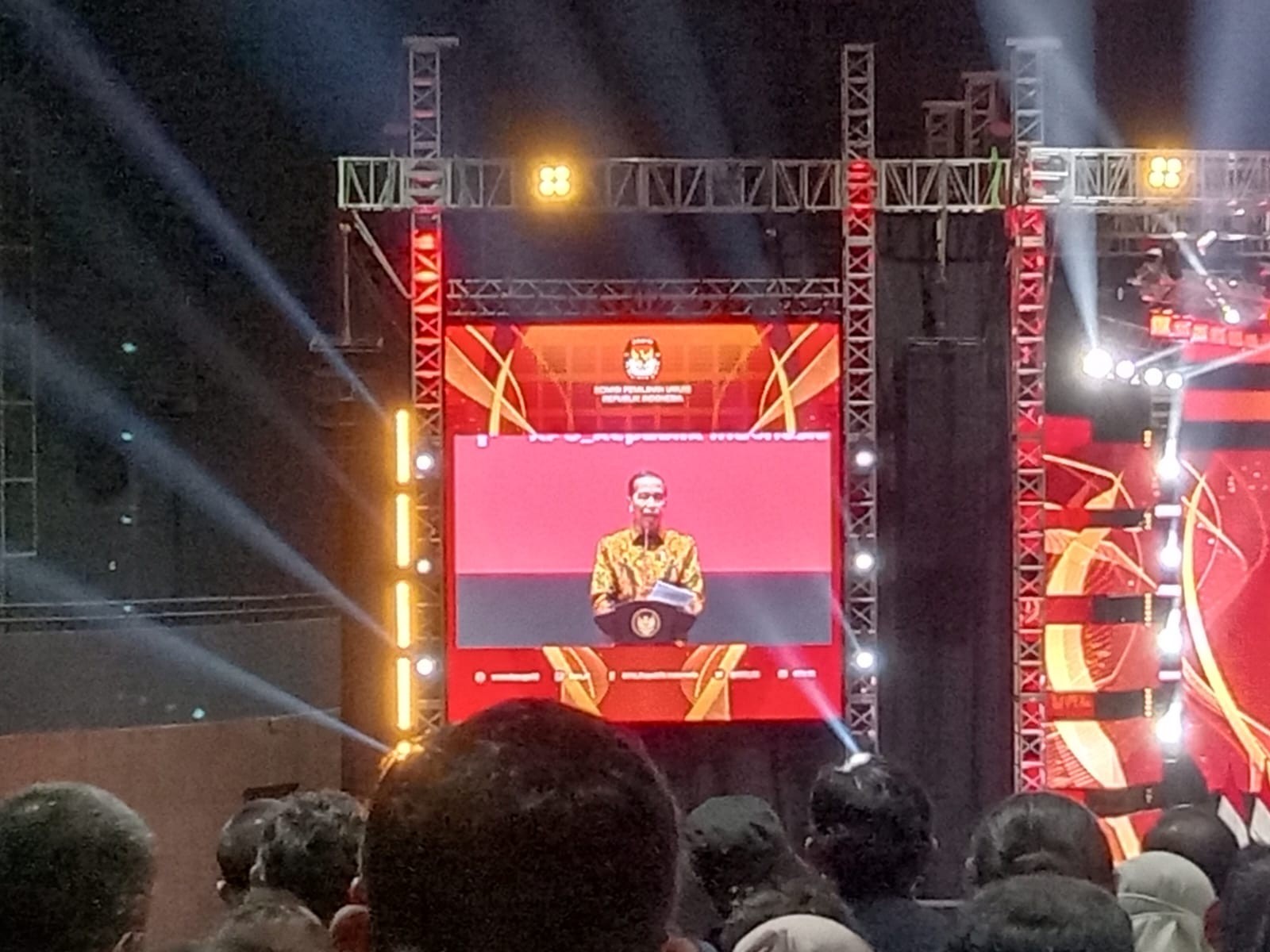 Presiden Jokowi pada pukul 09.00 WIB hadir di tempat tersebut. Hal itu merupakan kesempatan perdana seorang presiden hadir di acara KPU, masih menurut Hasyim.