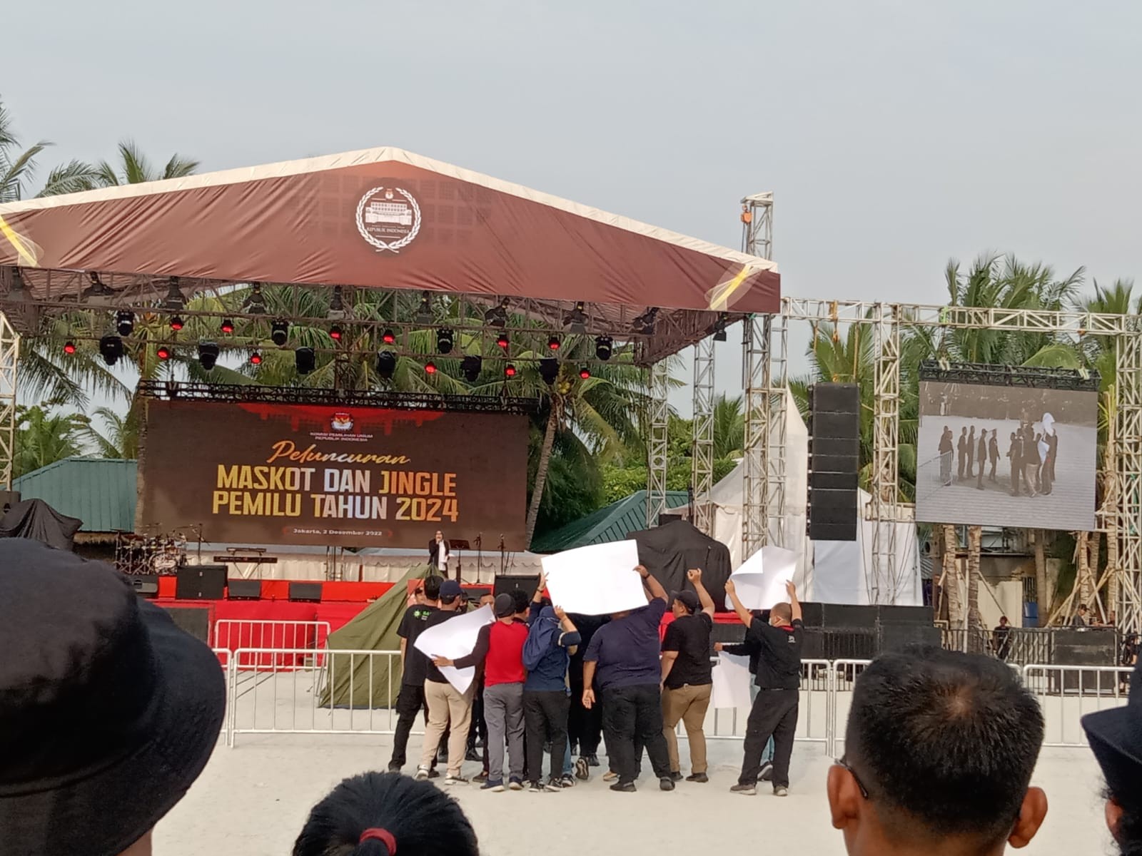 Sebelum peluncuran dimulai, dihadirkan band musik Cokelat. Grup inilah yang membuat jingle Pemilu 2024 dan dibawakan usai publik mengetahui maskot Pemilu 2024.