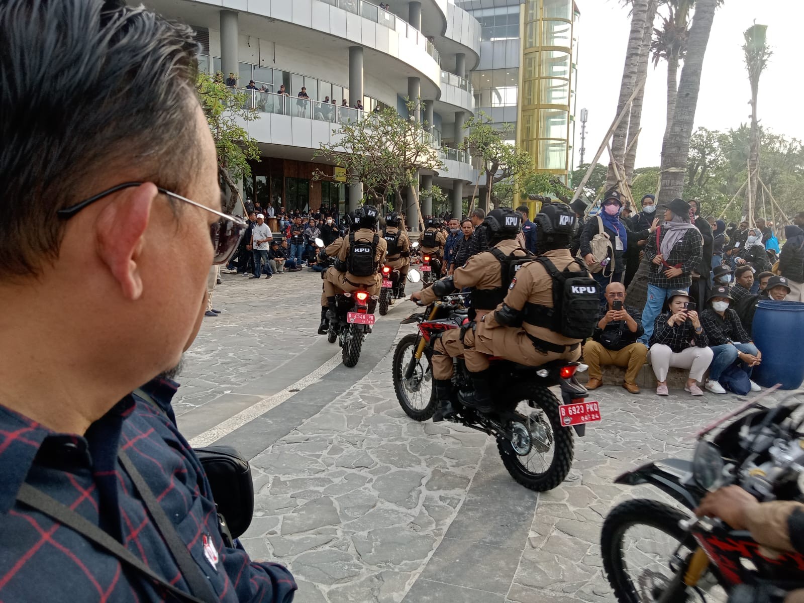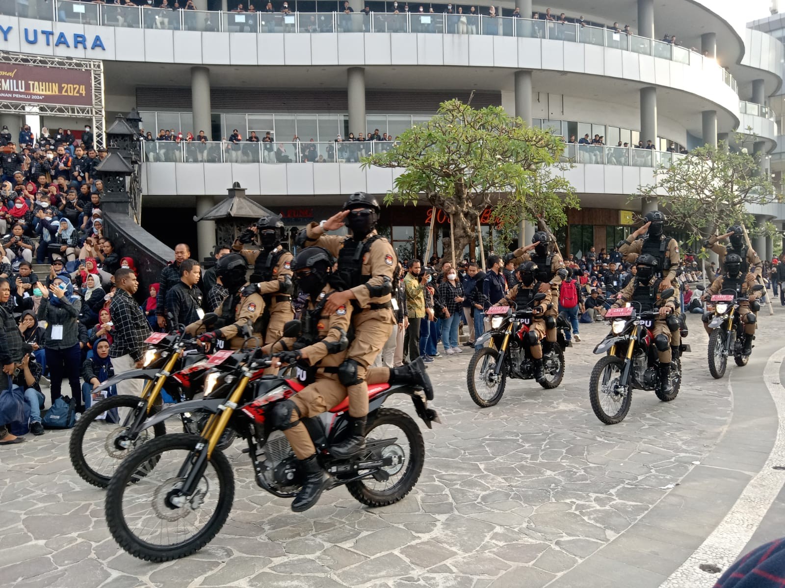Para petugas andalan KPU tersebut melakukan penghormatan di atas motor trail yang memang sering menjadi motor khas petugas kepolisian dalam mengamankan kondisi di tempat.