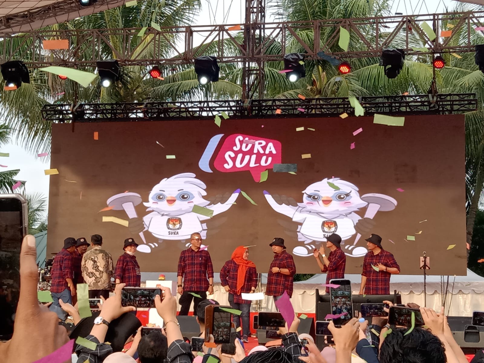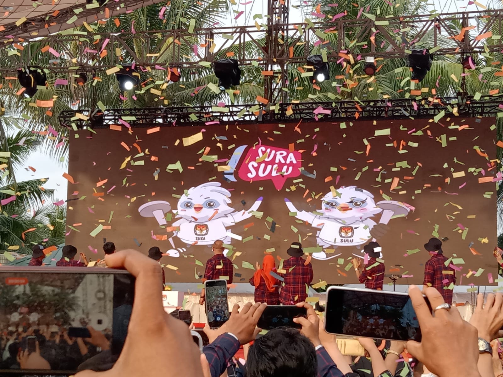 Dan, tibalah peluncuran atau bisa juga dikatakan "launching" maskot Pemilu 2024, yaitu: Sura dan Sulu oleh para komisioner KPU RI. Memakai panggung khas konser musik di depan lobby utara gedung.