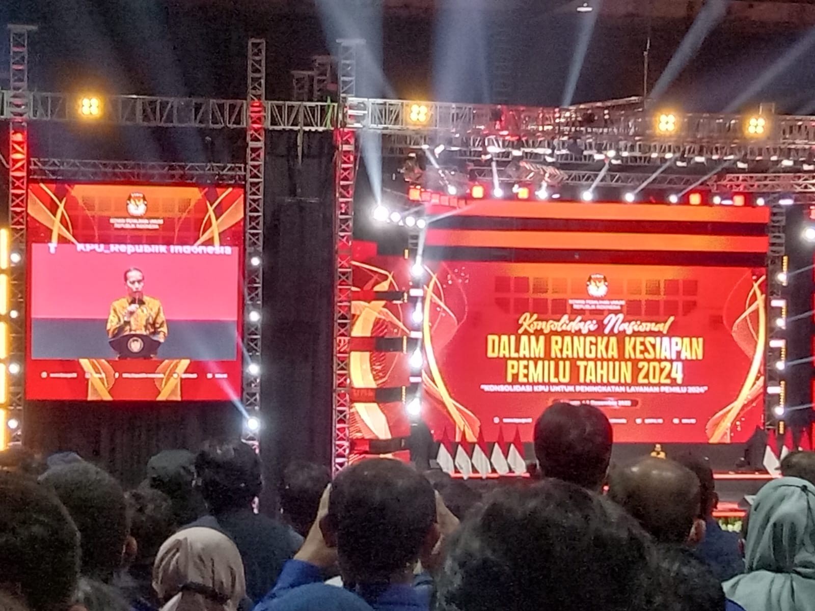 Sementara itu, Presiden Jokowi, memberikan berbagai pengarahan kepada para peserta, baik dari KPU RI, KPU provinsi/KIP Aceh, dan KPU kabupaten/kota.