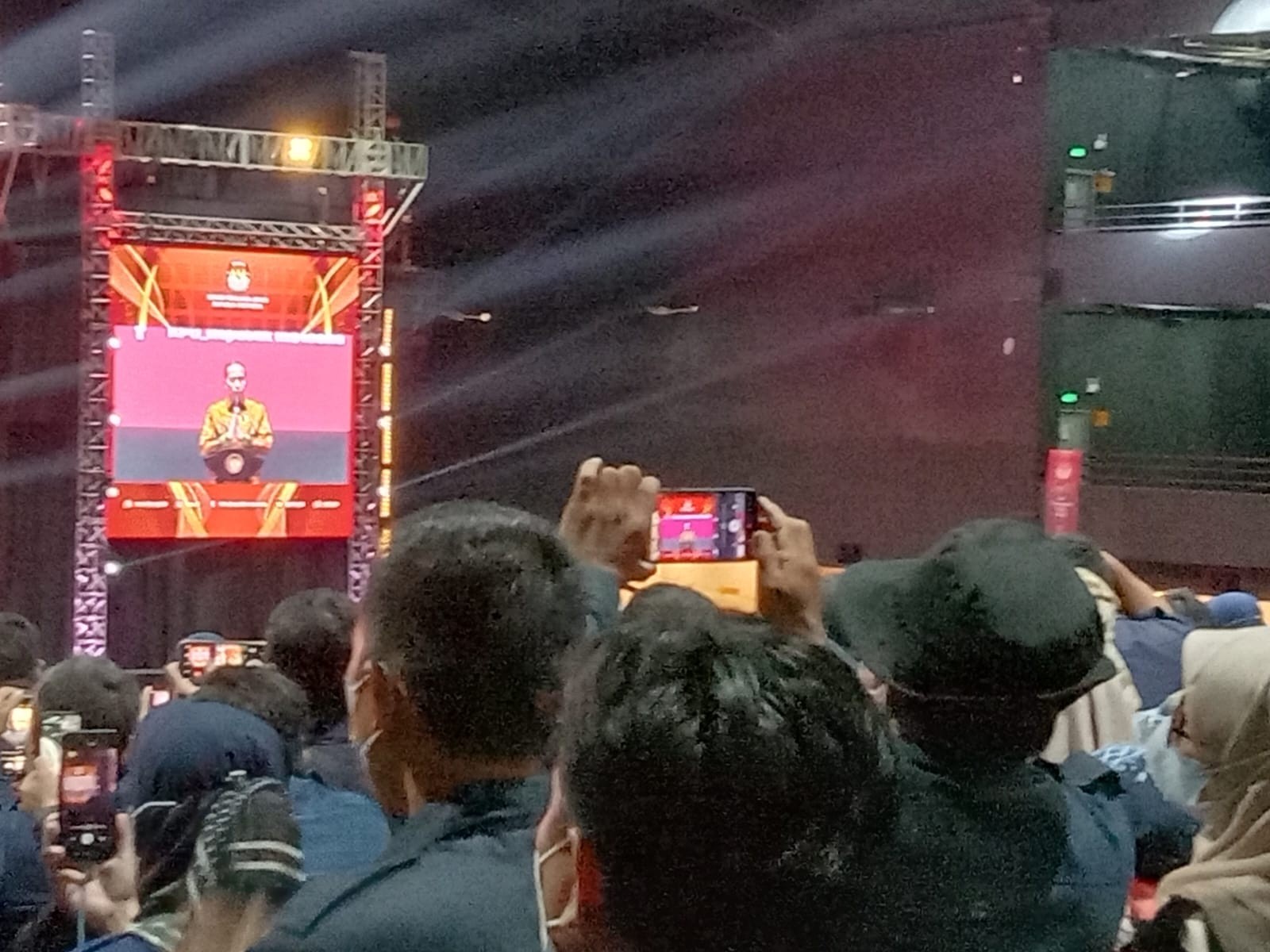 "Pada saat ini, hadir peserta sebanyak 6.341 orang." Ucap Hasyim disambut tepuk tangan para peserta, termasuk presiden sendiri.