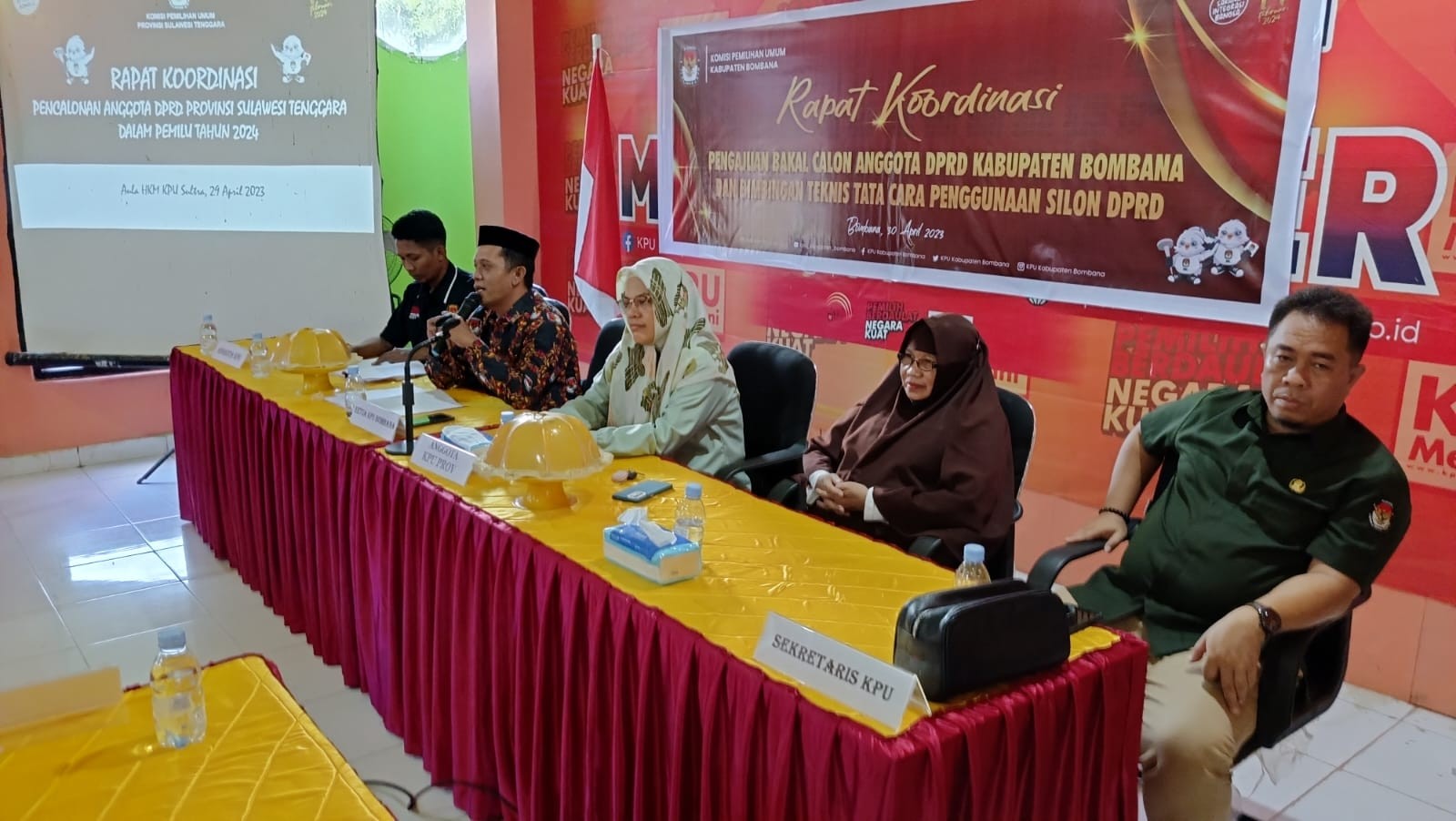 Bersama stakeholders terkait dan khususnya partai politik peserta Pemilu 2024 se-Kabupaten Bombana diselenggarakan sebuah rapat koordinasi (rakor). Lebih tepatnya adalah Rakor Pengajuan Bakal Calon Anggota DPRD Kabupaten Bombana dan Bimbingan Teknis (Bimtek) Tata Cara Penggunaan Silon DPRD.