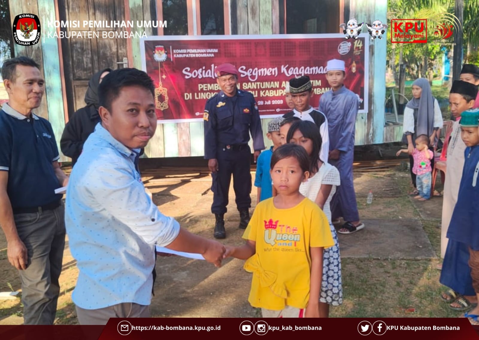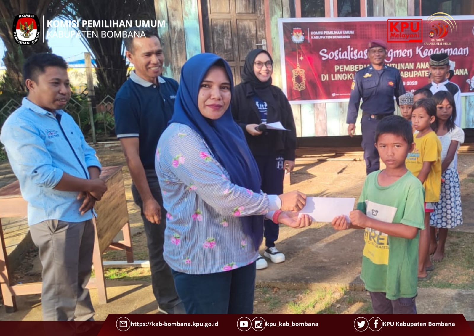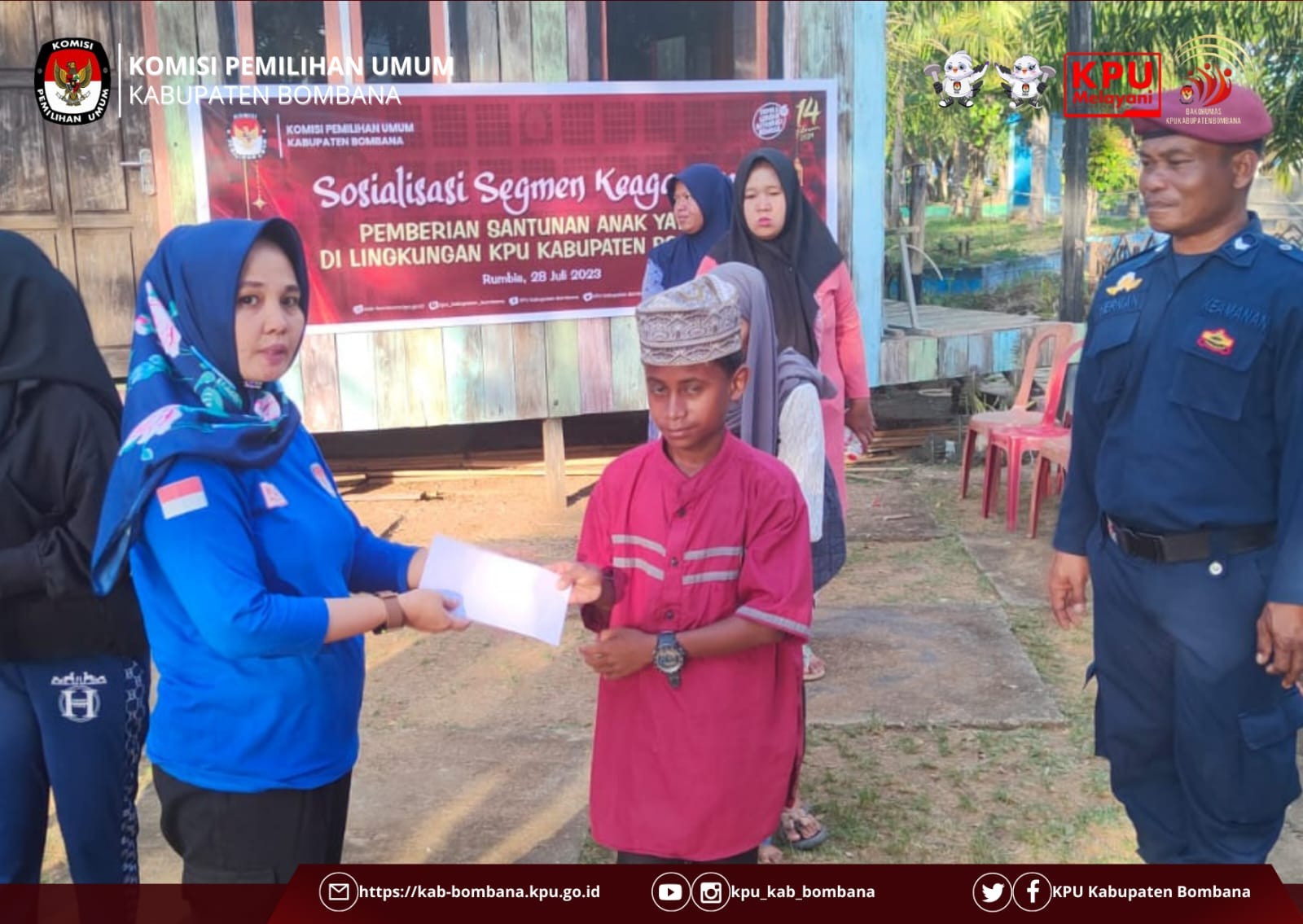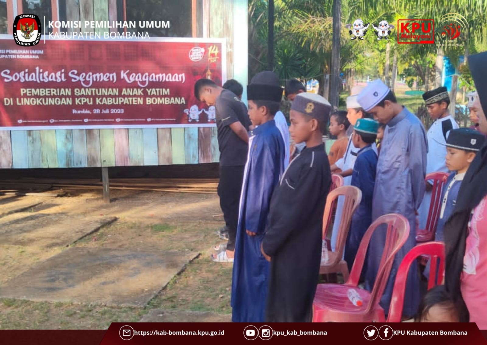 Sesuai arahan dari Sekretaris Jenderal KPU RI, sebagai sarana untuk meningkatkan silaturahmi dan solidaritas antarsesama, maka KPU Kabupaten Bombana mengadakan pemberian santunan anak yatim yang diselenggarakan di depan kantor lembaga penyelenggara Pemilu tersebut.