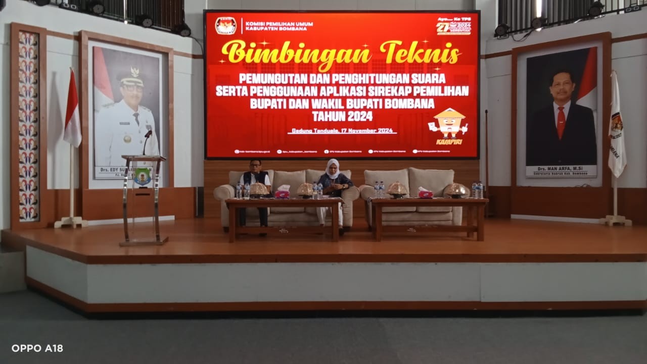 Dalam tahapan Pemilihan Bupati dan Wakil Bupati Bombana Tahun 2024, memang tidak ada yang namanya hari libur. Semua tanggal adalah hitam. Terbukti pada hari ini, Minggu (17/11/2024), KPU Kabupaten Bombana menyelenggarakan Bimbingan Teknis Pemungutan dan Penghitungan Suara, Simulasi Pungut Hitung, dan Penggunaan Aplikasi Sirekap. Kegiatan itu tertuang dalam Surat Undangan nomor: 450/PP.02.2-Und/7406/2/2024 tanggal 16 November 2024. Persiapan pun sudah dilakukan sehari sebelumnya.
