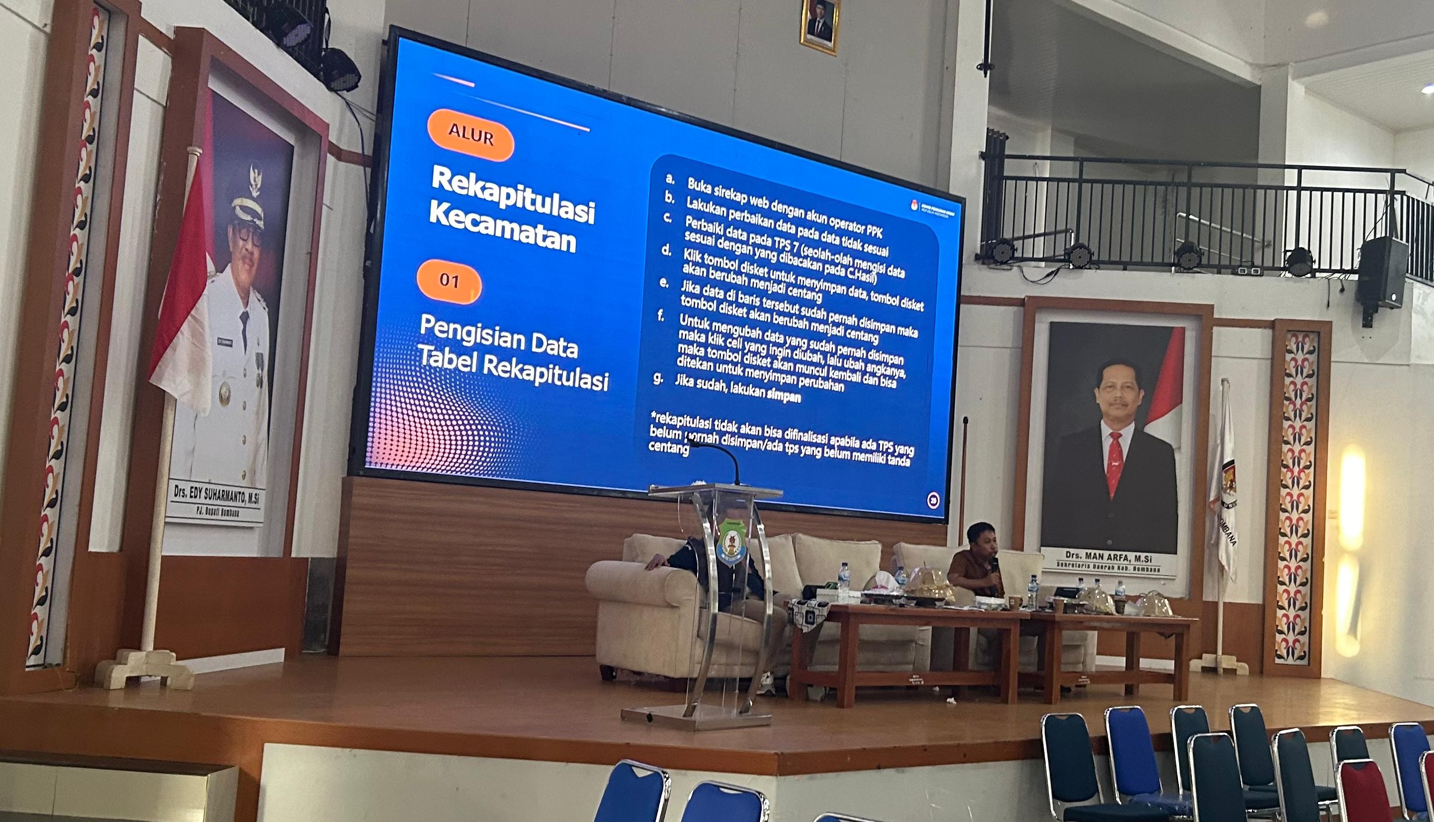 Para peserta kegiatan yang dimulai pukul 09.00 WITA ini adalah Ketua PPK untuk Dapil 1, 2, 3, dan 4, Anggota PPK yang menangani Teknis Penyelenggaraan dan Anggota PPK yang menangani aplikasi Sirekap untuk Dapil yang sama. Adapun untuk PPS, ketua dan seluruh anggotanya, masih di Dapil 1, 2, 3, dan 4.