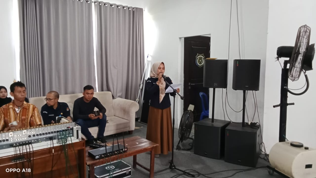 Hamna, staf Sekretariat KPU Kabupaten Bombana, menjadi MC, yang mengarahkan hadirin untuk menyanyikan lagu kebangsaan Indonesia Raya, mendengarkan jingle Pilkada Bombana Tahun 2024, serta mempersilakan Rizky Kurnia Rahman, Kasubbag Teknis Penyelenggaraan Pemilu dan Hukum, sebagai pembaca doa.