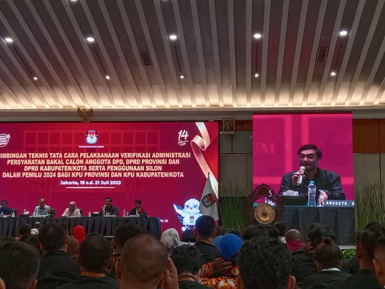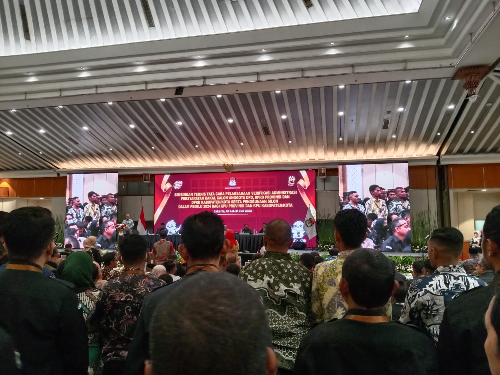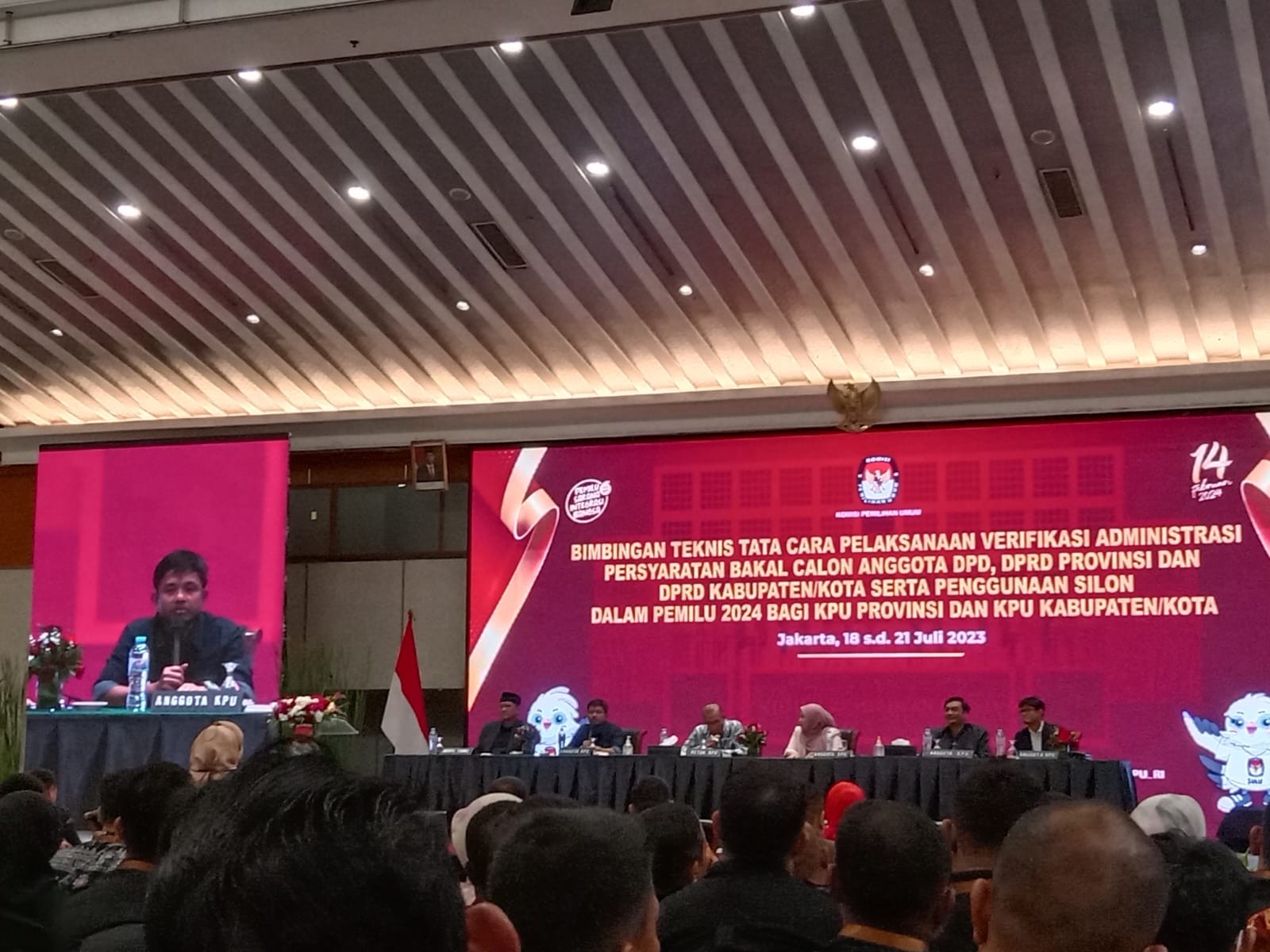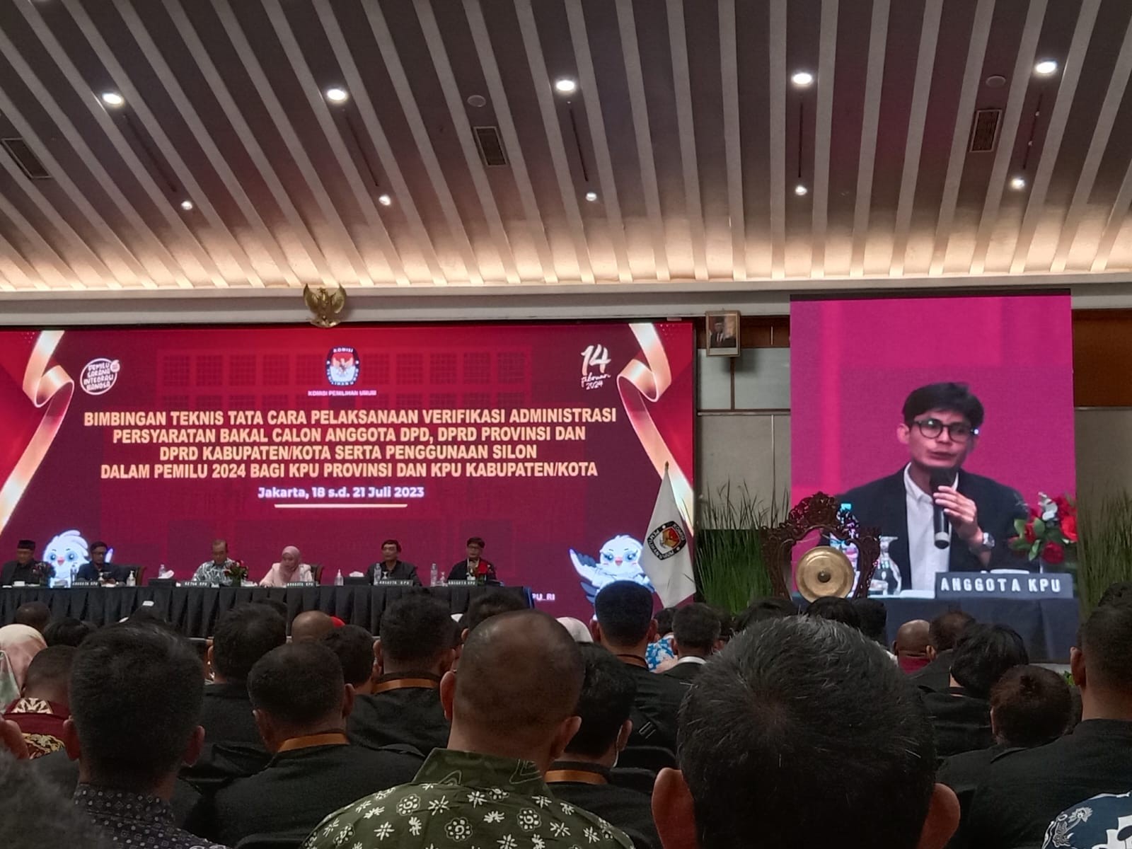 Dalam momen tanggal merah karena hari libur nasional tanggal 1 Muharram 1445 Hijriyah, KPU RI tetap melaksanakan kegiatan Bimbingan Teknis (Bimtek) Tata Cara Pelaksanaan Verifikasi Administrasi Persyaratan Bakal Calon Anggota DPD, DPRD Provinsi,dan DPRD Kabupaten/Kota serta Penggunaan SILON dalam Pemilu 2024 Bagi KPU Provinsi dan KPU Kabupaten/Kota, Selasa (19/07/2023) di Jakarta.