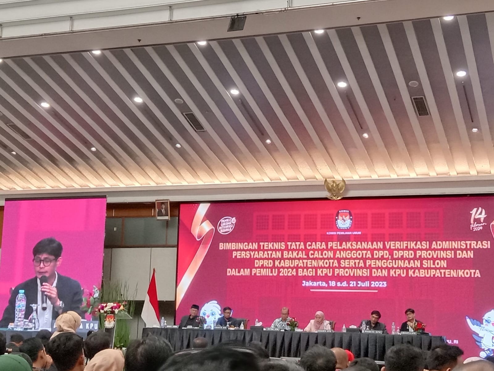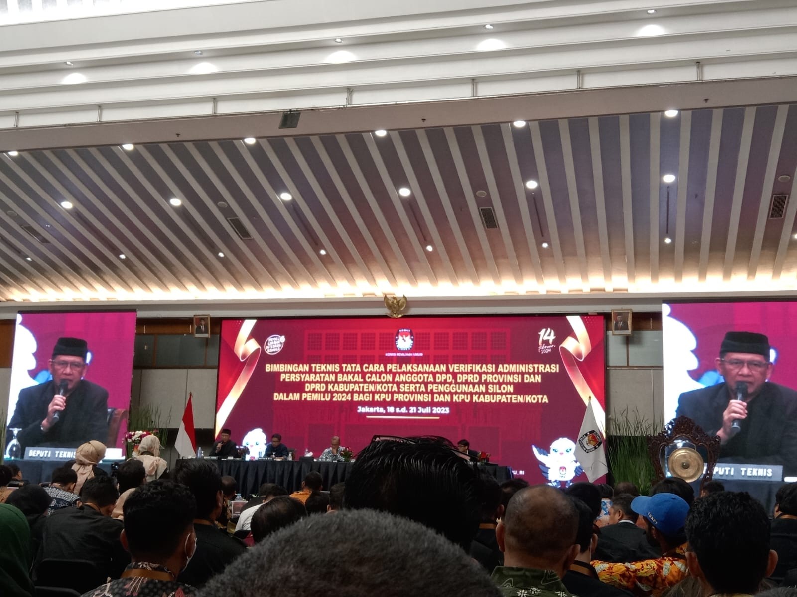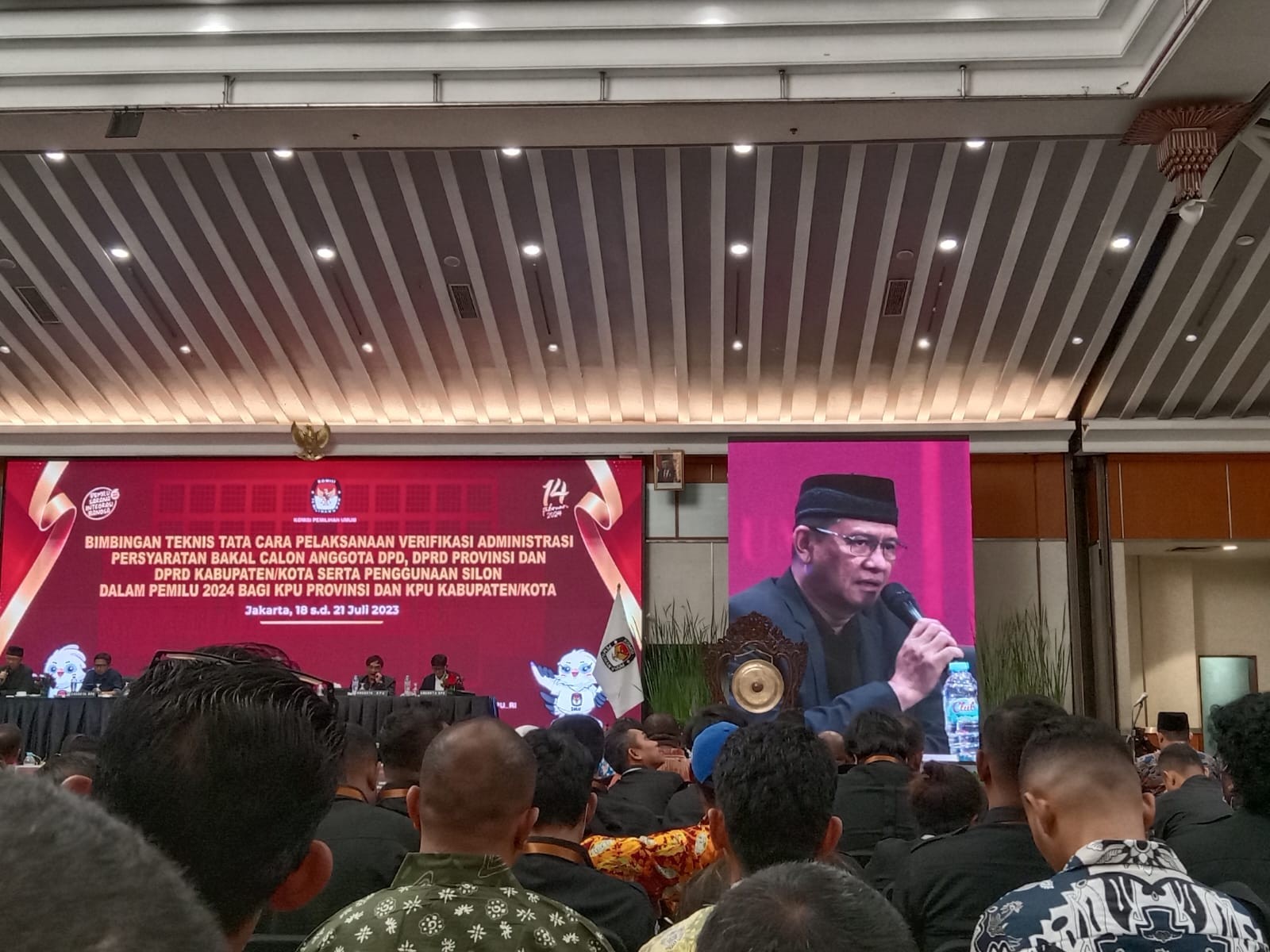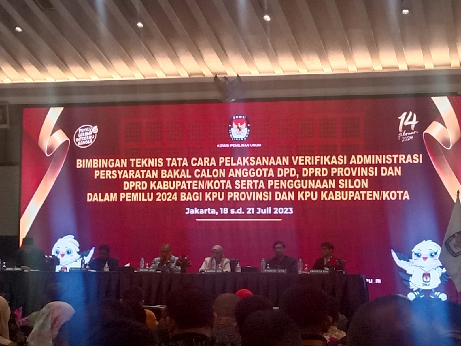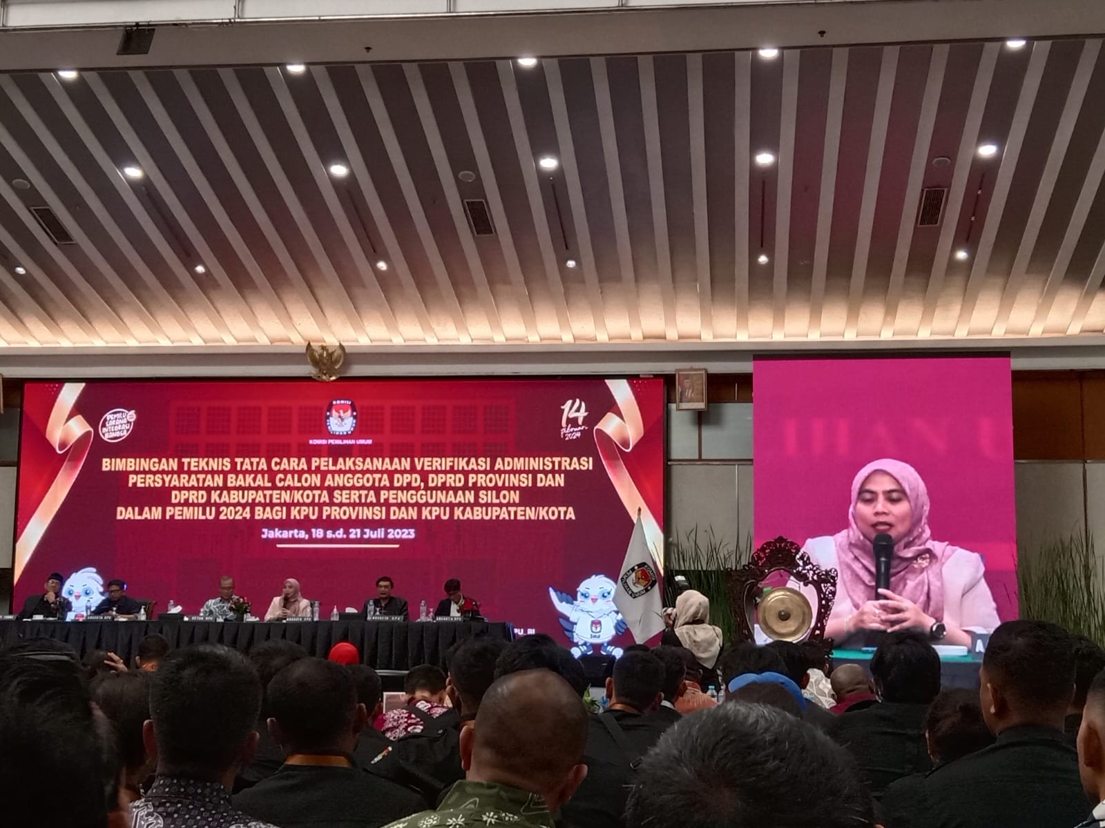 Dalam momen tanggal merah karena hari libur nasional tanggal 1 Muharram 1445 Hijriyah, KPU RI tetap melaksanakan kegiatan Bimbingan Teknis (Bimtek) Tata Cara Pelaksanaan Verifikasi Administrasi Persyaratan Bakal Calon Anggota DPD, DPRD Provinsi,dan DPRD Kabupaten/Kota serta Penggunaan SILON dalam Pemilu 2024 Bagi KPU Provinsi dan KPU Kabupaten/Kota, Selasa (19/07/2023) di Jakarta.