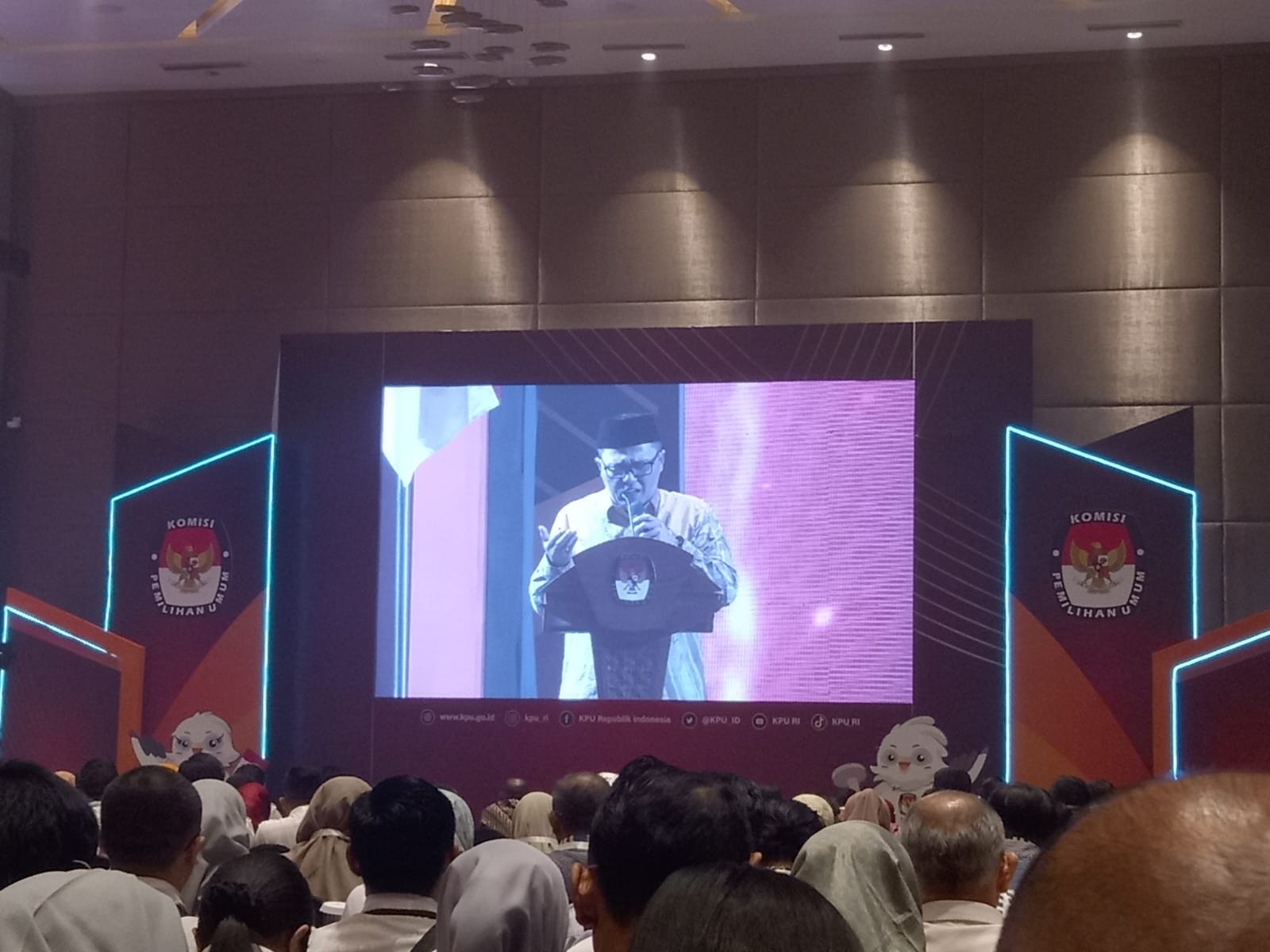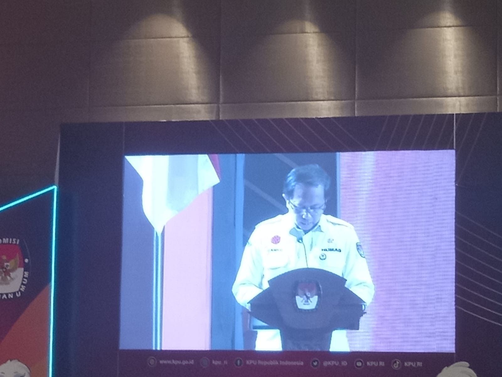 Cahyo Ariawan, Kepala Biro Partisipasi dan Hubungan Masyarakat Sekretariat Jenderal KPU RI, menyampaikan di podium bahwa para peserta rakornas kali ini dari 38 KPU provinsi dan 514 KPU kabupaten/kota.