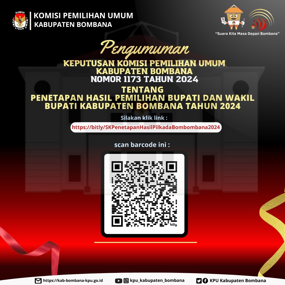 Demikian informasi ini disampaikan, silakan disebarluaskan agar makin banyak yang mengetahui hasil Pemilihan Bupati dan Wakil Bupati Bombana Tahun 2024.