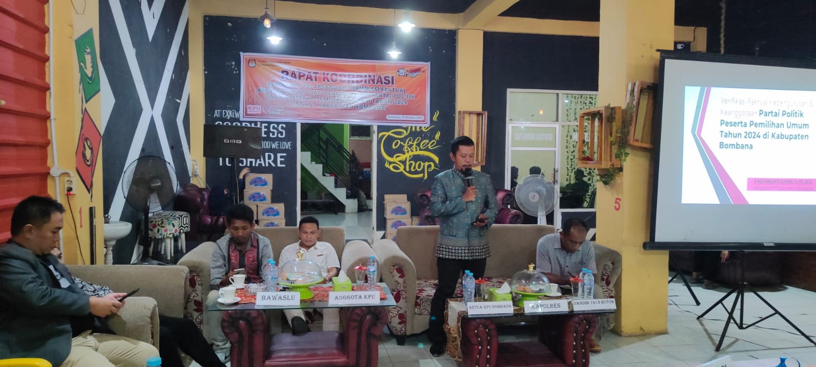 Tepatnya, hari Rabu (12/10/2022), dilaksanakan Rapat Koordinasi Persiapan Pelaksanaan Verifikasi Faktual Kepengurusan dan Keanggotaan Partai Politik Calon Peserta Pemilihan Umum Tahun 2024 Tingkat Kabupaten Bombana. Bertempat di Cafe Grand Lampusui, Kecamatan Rumbia. Acara dimulai pada malam hari, pukul 20.10 WITA.