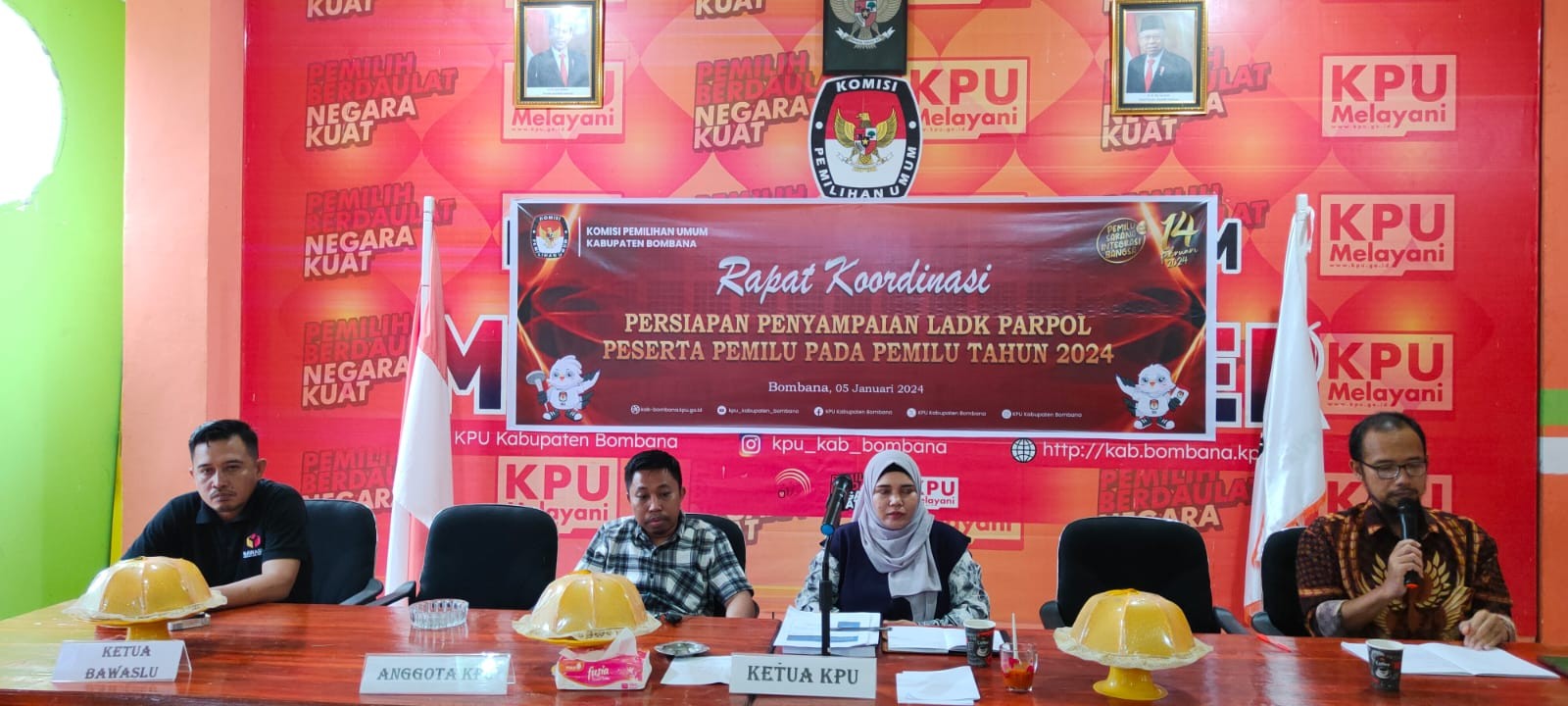 Sebelum penyampaian Laporan Awal Dana Kampanye (LADK) partai politik peserta Pemilu 2024, KPU Kabupaten Bombana menyelenggarakan rapat koordinasi dalam rangka tahapan tersebut. Kegiatan ini dilaksanakan pada Jum'at (05/01/2024) pada pukul 15.00 WITA. Bertempat di aula lantai 2 kantor KPU Kabupaten Bombana.
