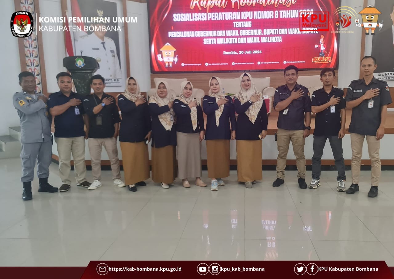 Dalam rangka memahamkan kepada jajaran badan adhock Pemilihan Bupati dan Wakil Bupati Bombana Tahun 2024 terkait Peraturan KPU Nomor 8 Tahun 2024 tentang Pencalonan Gubernur dan Wakil Gubernur, Bupati dan Wakil Bupati, serta Walikota dan Wakil Walikota, maka KPU Kabupaten Bombana mengadakan rapat koordinasi (rakor).