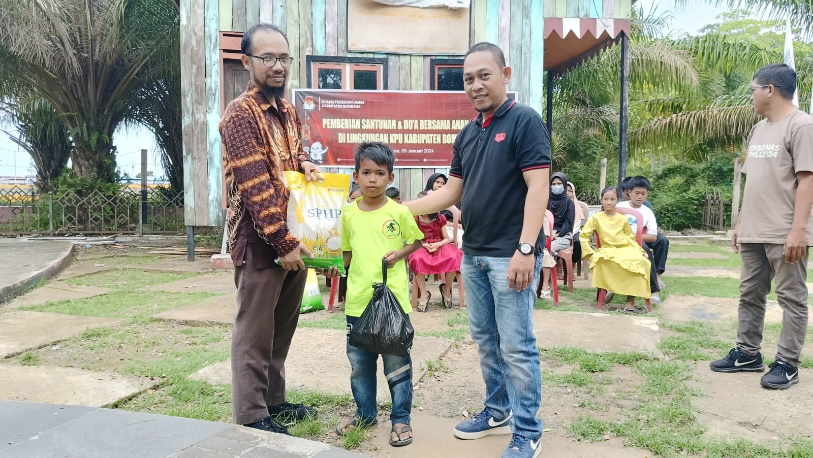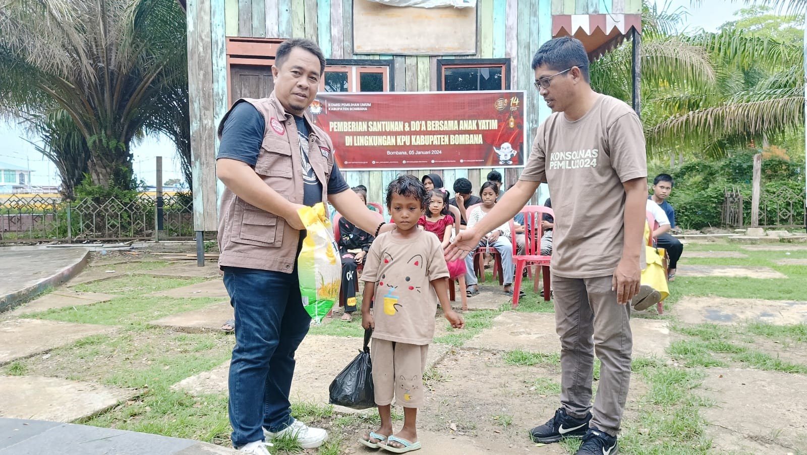 Acara inti adalah pemberian santunan kepada para anak yatim. Mereka dipanggil satu persatu untuk menerima santunan dari KPU Kabupaten Bombana.