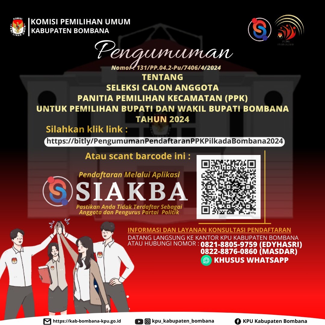 Anda bisa mendaftar melalui link: Pengumuman Pendaftaran PPK Pilkada Bombana 2024