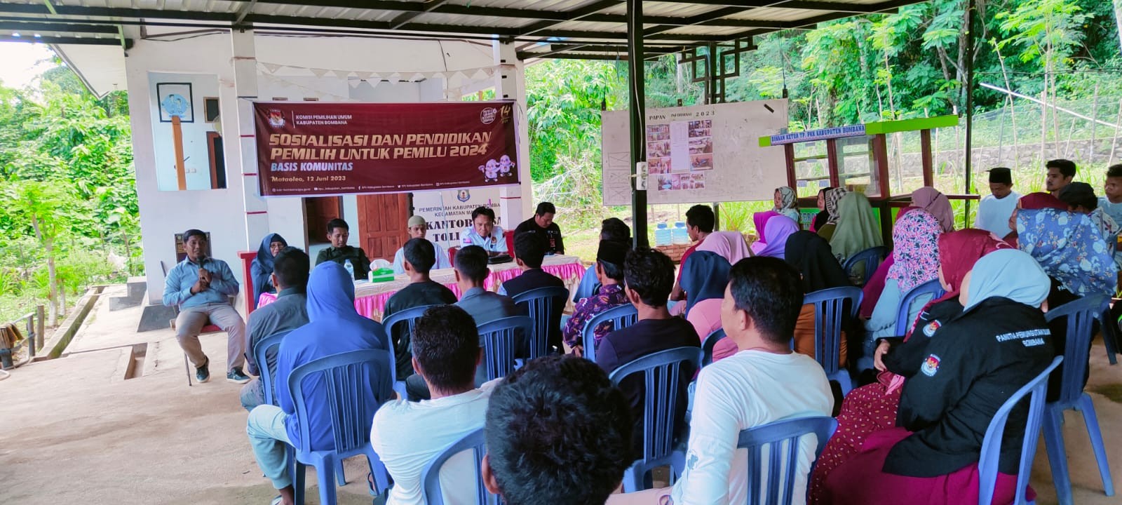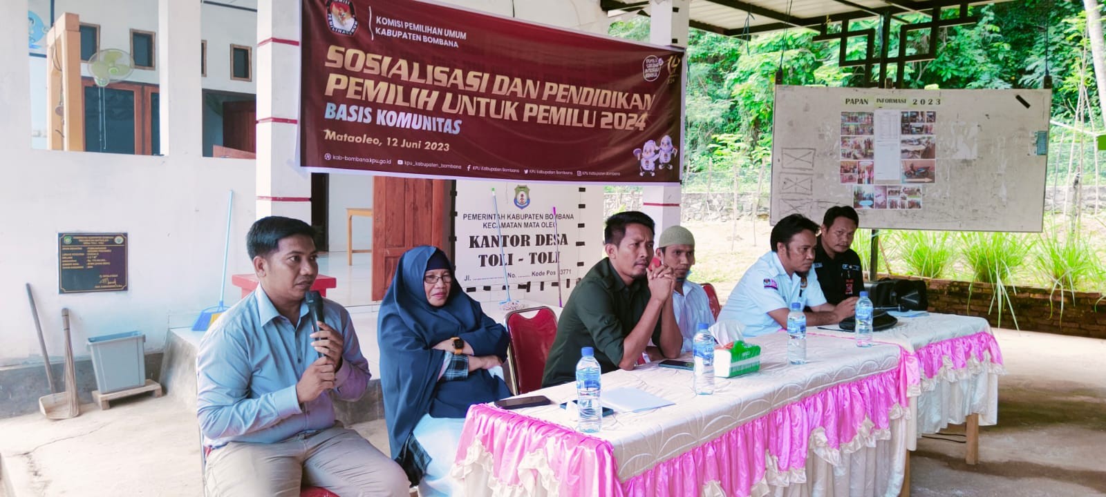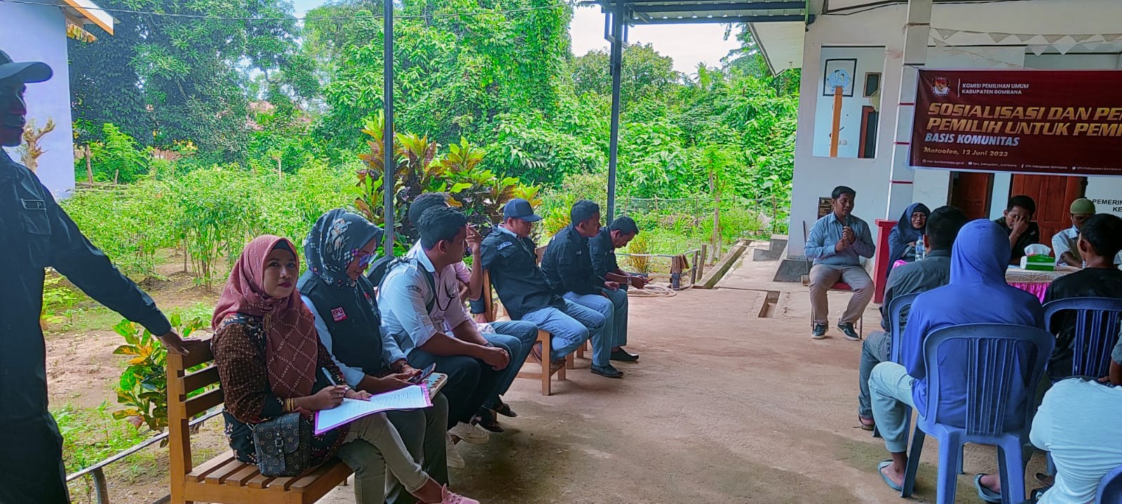 Pada hari Senin (12/06/2023), dilaksanakan kegiatan sosialisasi dan pendidikan pemilih dengan menyasar basis komunitas di Kecamatan Mataoleo. Hadir sebagai pembicara adalah dua Anggota KPU Kabupaten Bombana, yaitu: Abdi Mahatma dan Kasjumriati Kadir.